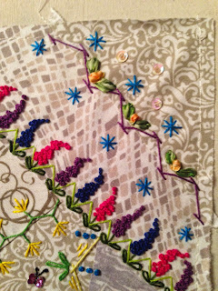 Well it been a little while, so I owe a post here! Still working on the March CQJP 2015 portion of my bear, but I thought I would post some closeups of some of the stitch work I have done so far.
